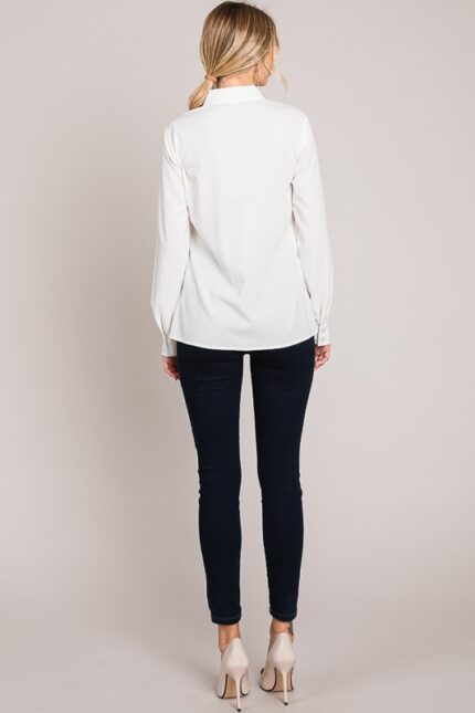 Puff Long Sleeve Round Neck Open Back Crop Top